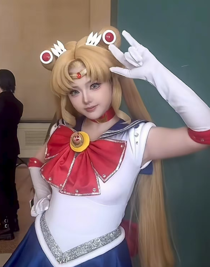 《好意思仙女战士》里的月野兔,是若干东说念主的童年女神 —— 蓬松的金发,大大的眼睛,穿水手服时灵动又俏皮,变身时那句 “代表月亮消亡你”,又甜又有劲量。可前次刷到一个月野兔 cos,我差点没认出来:coser 把水手服改成了超短露脐款,裙摆短到露大腿,领口开得极低,本来的白色水手领被染成了粉色,还缝了一堆低价水钻,扫数没了战胜的清纯感。