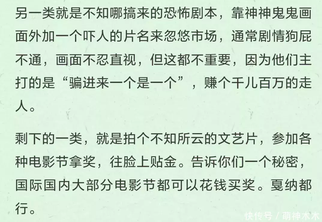 ——有东谈主搞个容颜赚补贴;有东谈主骗进来一个是一个;有东谈主拍片买奖给我方贴金。