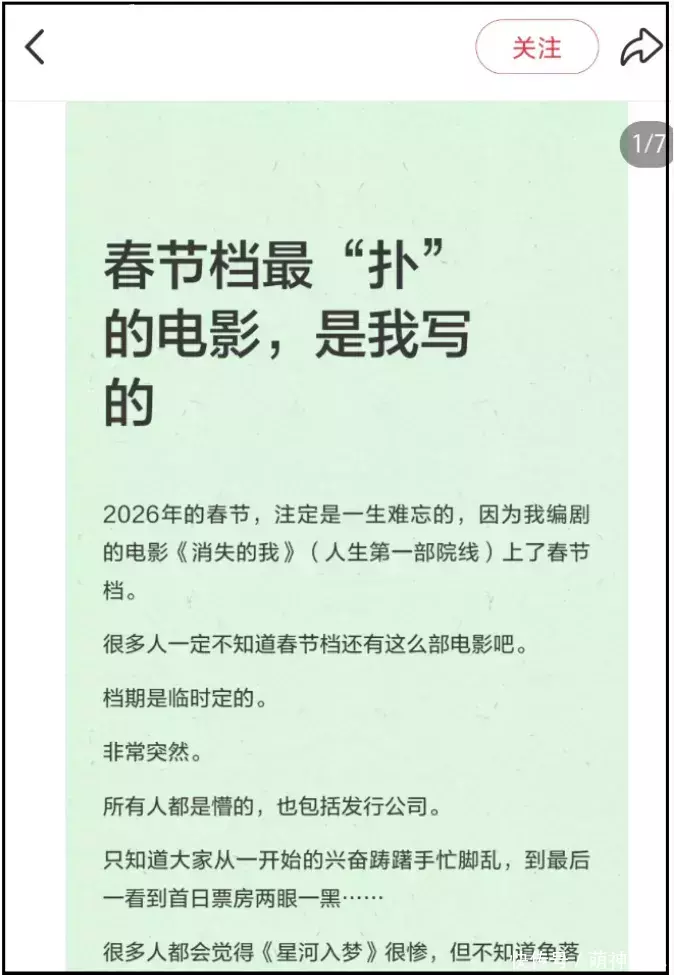 终末照旧用《散失的我》编剧一段话来落幕吧,很好证据了为什么2026年一开年就有了最冷春节档。