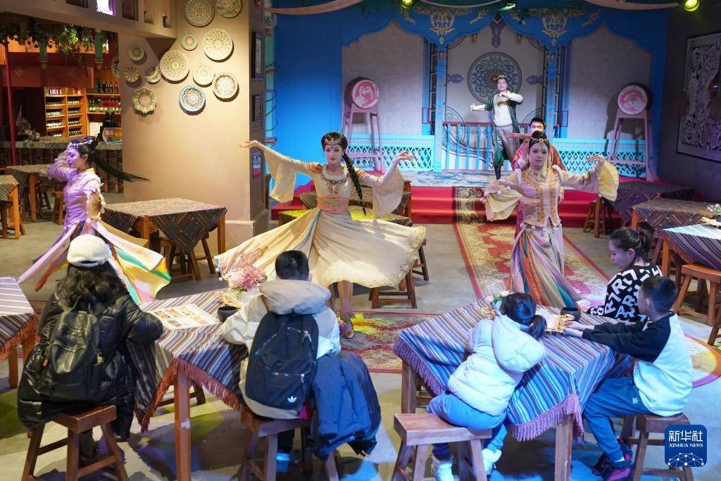 12月23日,演员在街区内进行千里浸式演出《乐舞胡旋》。