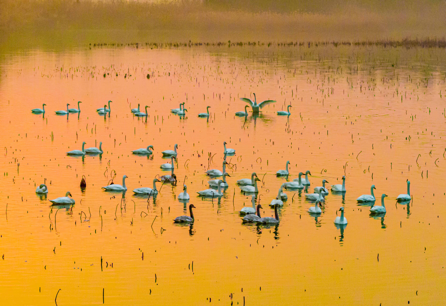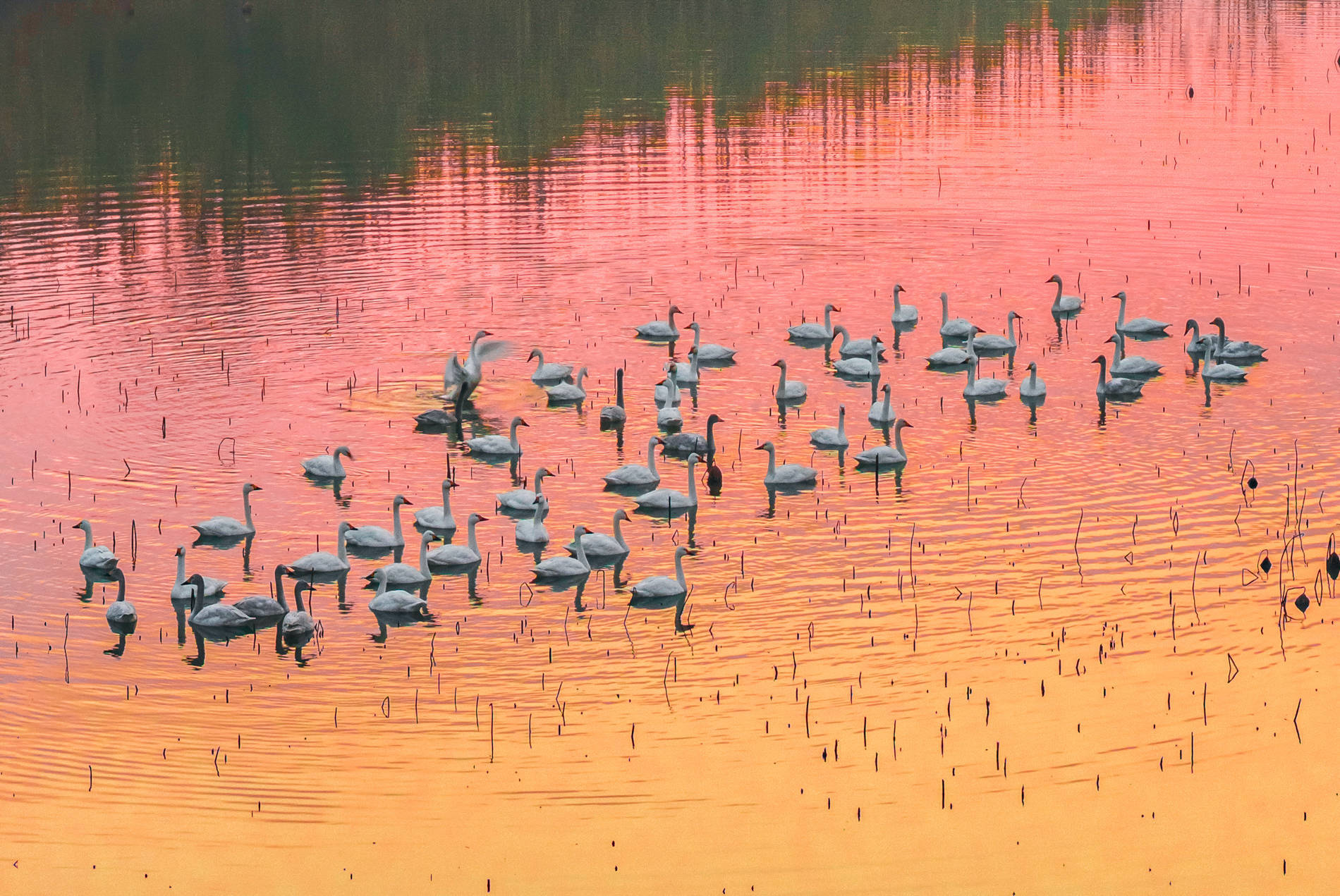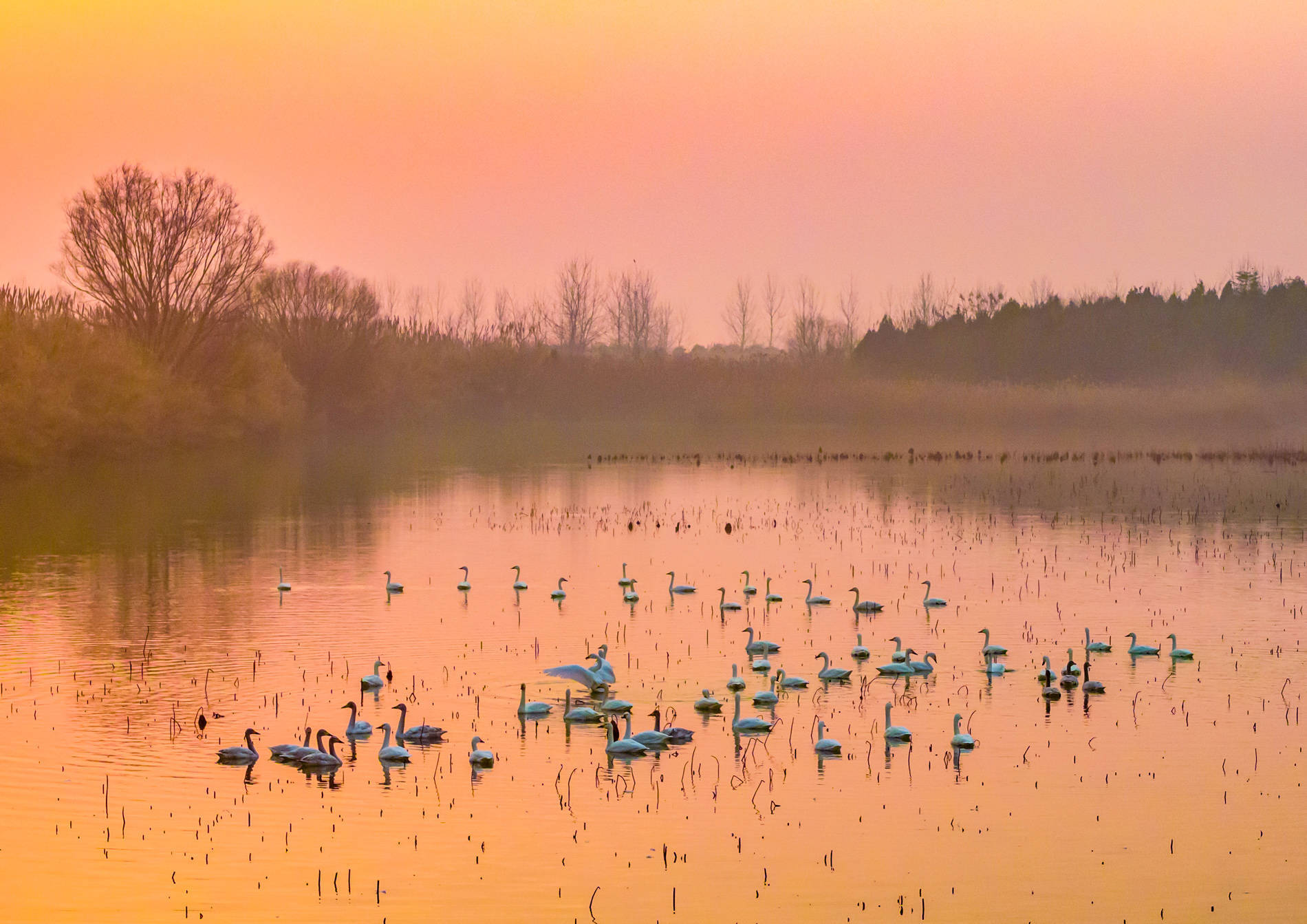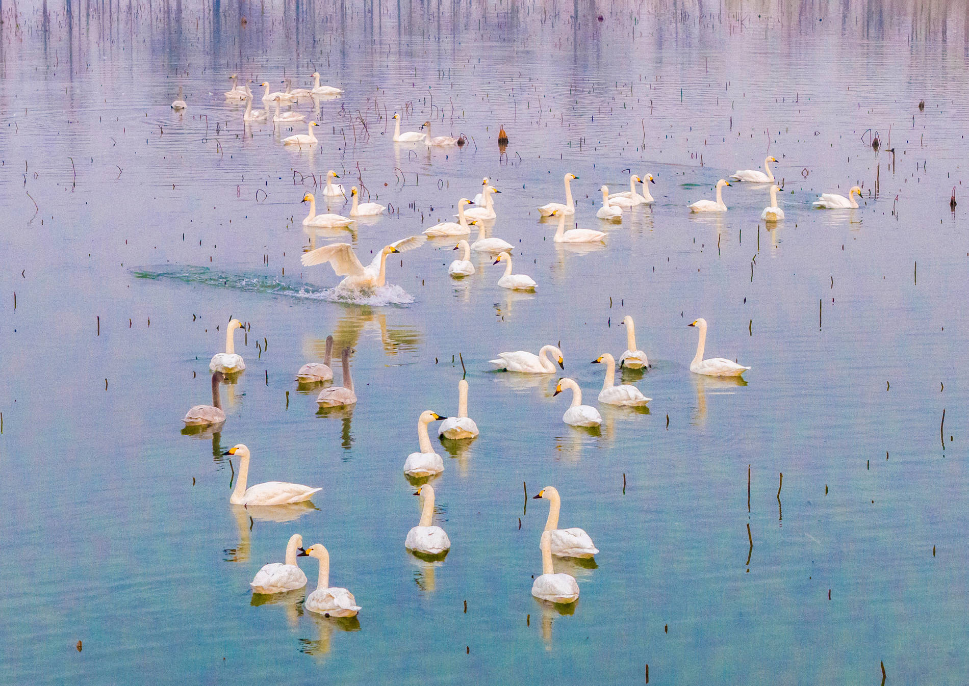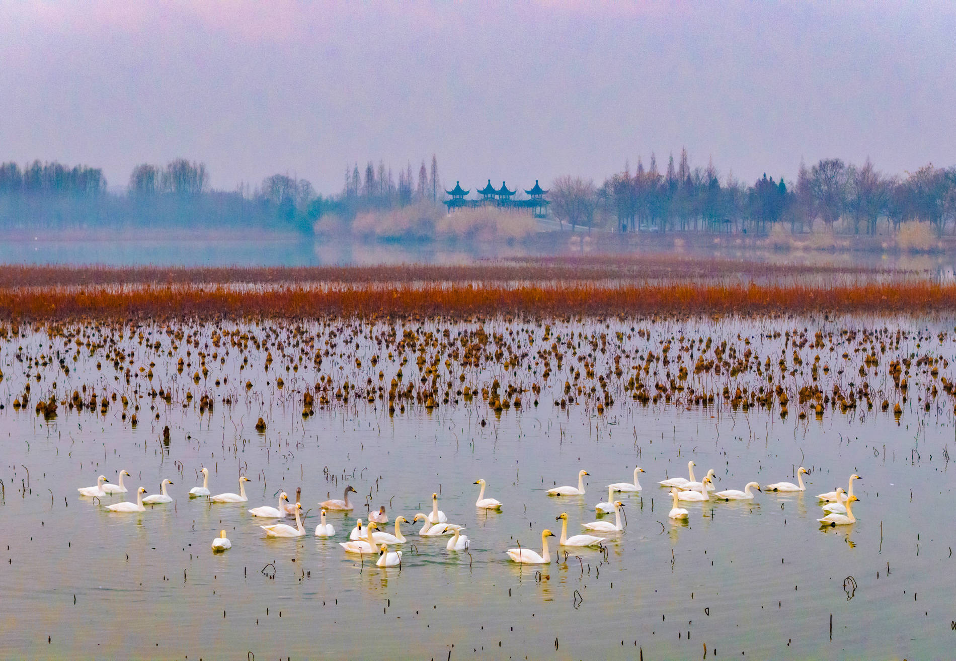 2026年1月14日,江苏省泗洪县洪泽湖湿地景区临淮段迎来数十只小天鹅。这些白色精灵或振翅漫空、追赶嬉戏,或栖息水面、直率觅食,为冬日湿地增添一抹灵动的欲望。