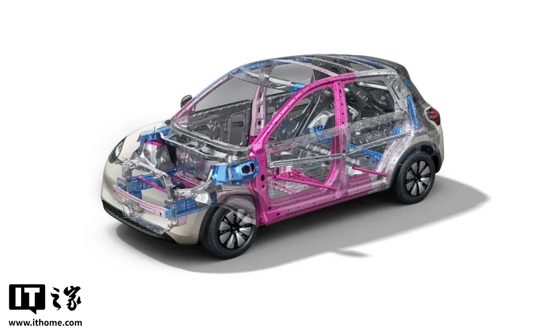 2025 款五菱缤果整车接收环状笼式车身,全车高强钢占比达到 74%,25 处要道部位使用最高抗拉强度达 1500MPa 的超高强钢。