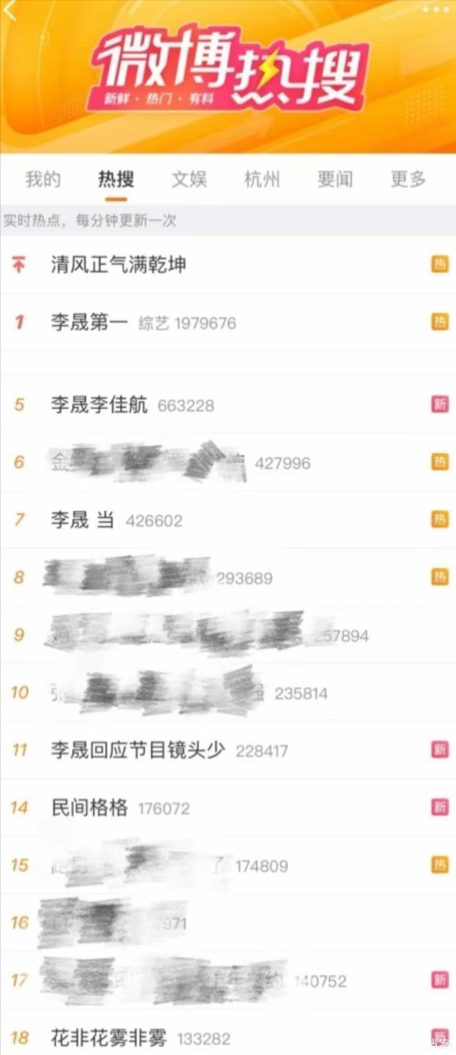 即使初舞台唯有两分钟镜头,李晟的热度依然名列三甲。