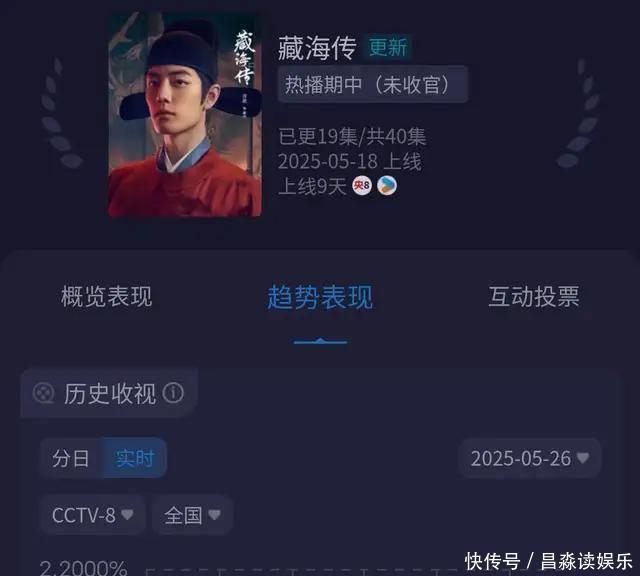 CCTV5播乒乓球比赛,颇具争议的某位乒乓球队员终于完成了他的东谈主生大满贯,像乒乓球这样的国民级别结合赛事,收视率基本上一家独大。就在这样的情况之下,《藏海传》还喝到了肉汤,收视率依然挺破了2。