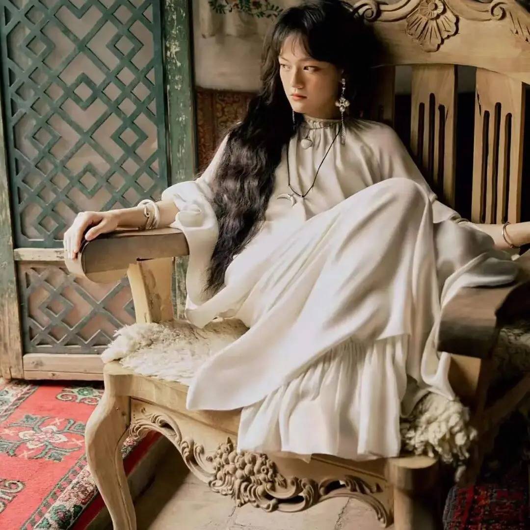 阳光洒在文淇身上,她衣服当地特质的刺绣长裙,站在黄土墙前微微一笑,展现出所有生疏的立场。