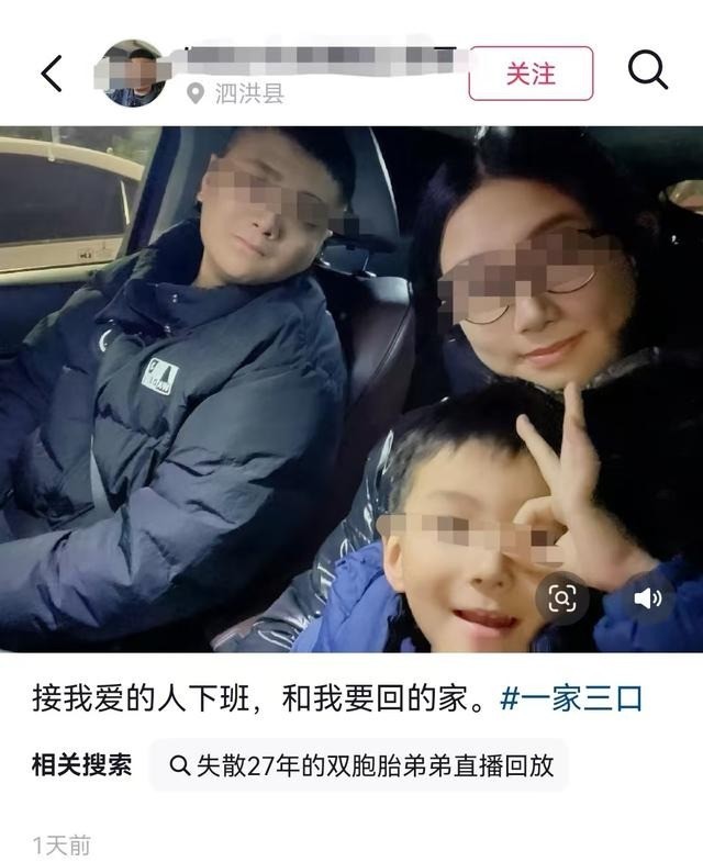 但是公共照旧看清了这家东谈主的真样子,哥哥回到泗洪,发文接我爱的东谈主放工,和我要回的家,配图是一家三口的像片。