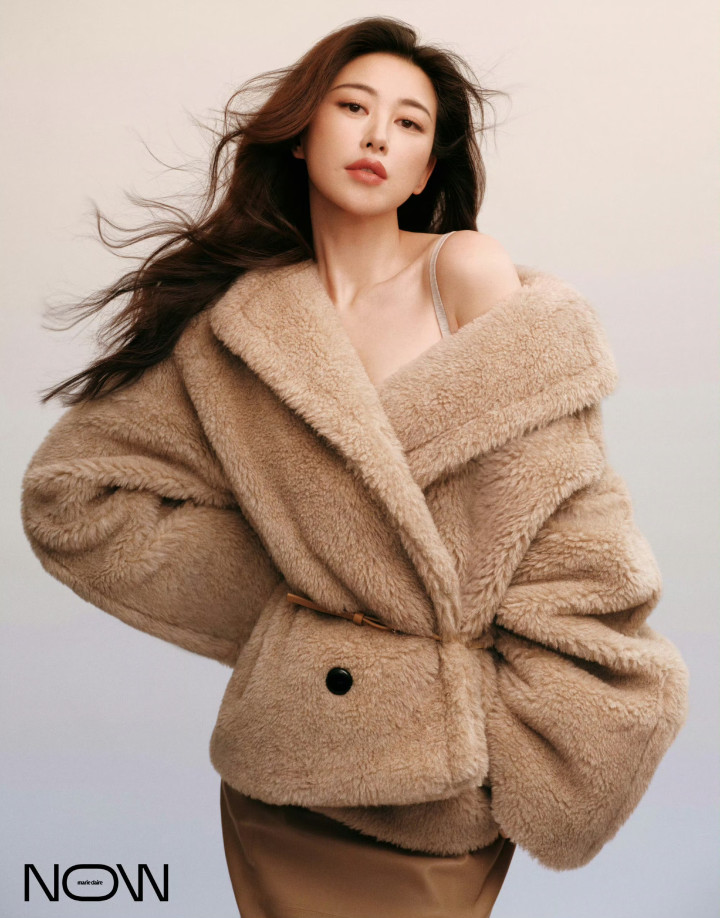 驼色毛绒外衣松垮地搭在肩头,露肩打算描写出细密锁骨,酷飒与娇媚交汇,蓬松的毛绒质感衬得肌肤精良,将冬日的慵懒与摩登先锋感好意思满交融。