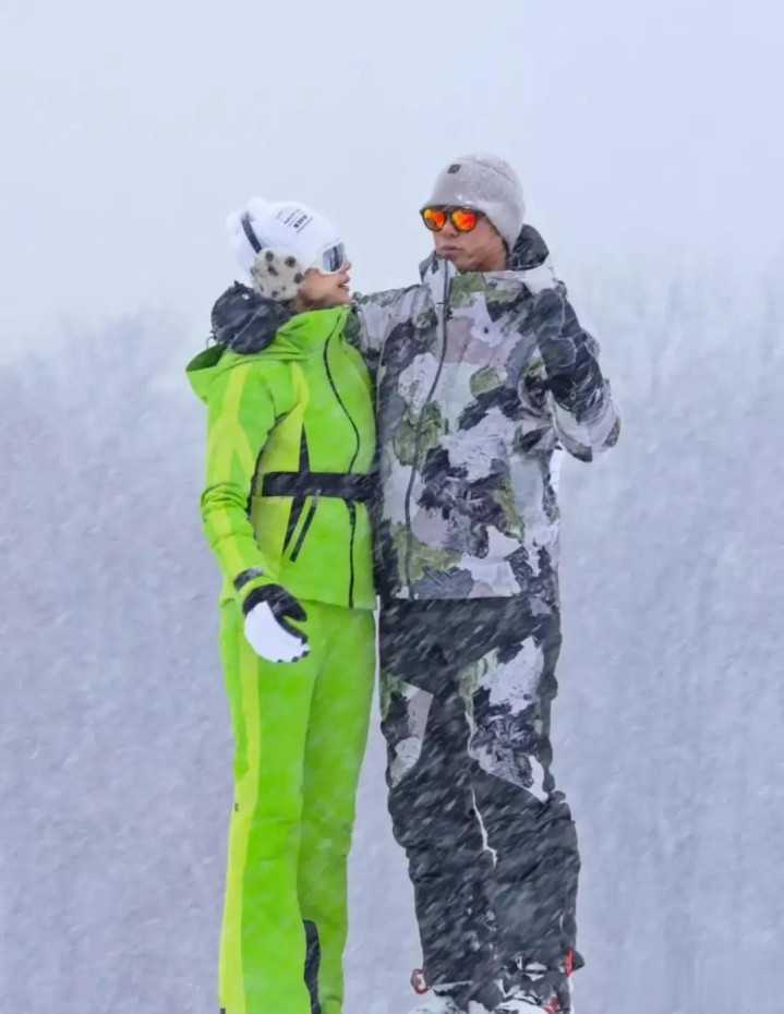 相片里漫天大雪跟小冰雹似的砸下来,胡杏儿和老公李乘德早有准备,戴着护目镜把脸遮了泰半,还能笑着靠近镜头,一看即是有申饬的“老手”。