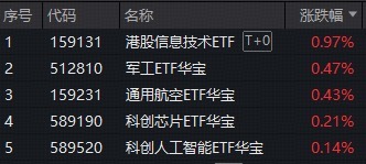盘面上,半导体逆市走强,全市集首只*聚焦“港股芯片”产业链的港股信息工夫ETF(159131)场内价钱逆市涨近1%,“全芯”科创芯片ETF(589190)和半导体含量近一半的科创东说念主工智能ETF(589520)场内价钱挨次冲激越超1%,最终双双收涨。